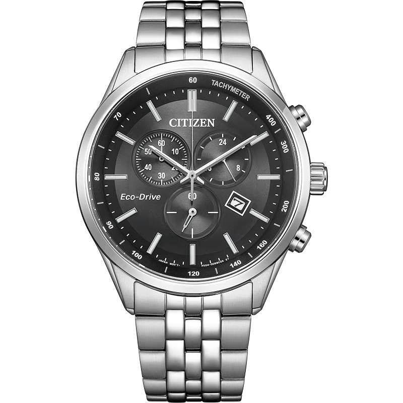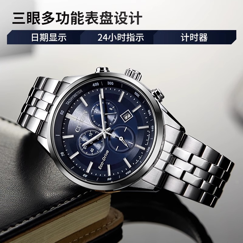 Citizen西铁城手表男商务三眼计时休闲钢带光动能男表AT2570-56L