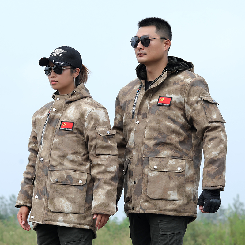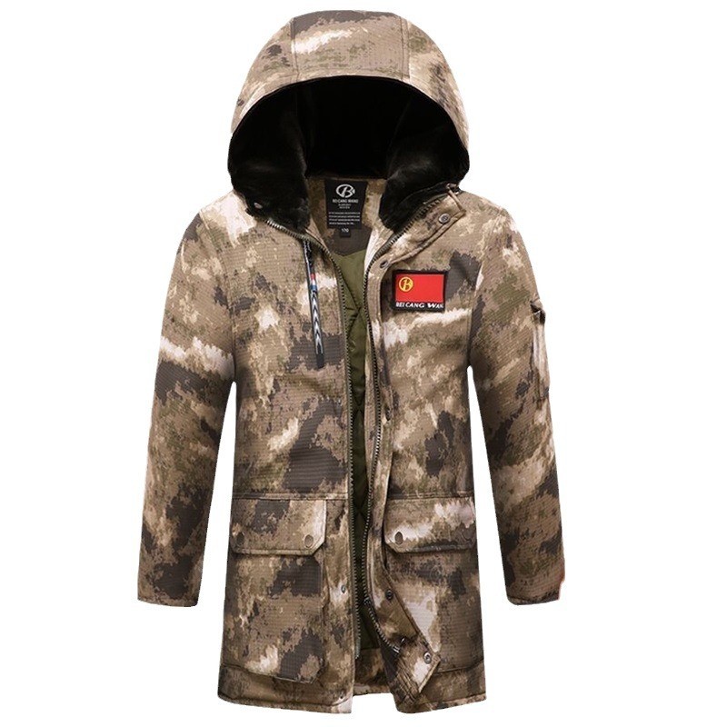 军大衣男款冬季加厚连帽加厚保暖棉服迷彩大衣中长短款工作服外套
