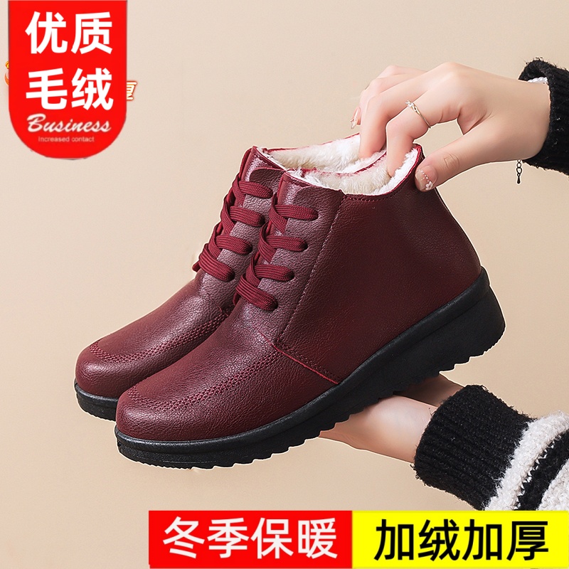 冬季妈妈鞋棉鞋中老年女鞋平底加厚保暖防滑老人雪地靴中年短靴女