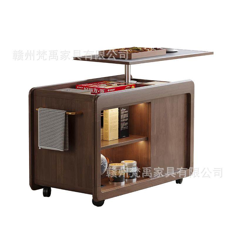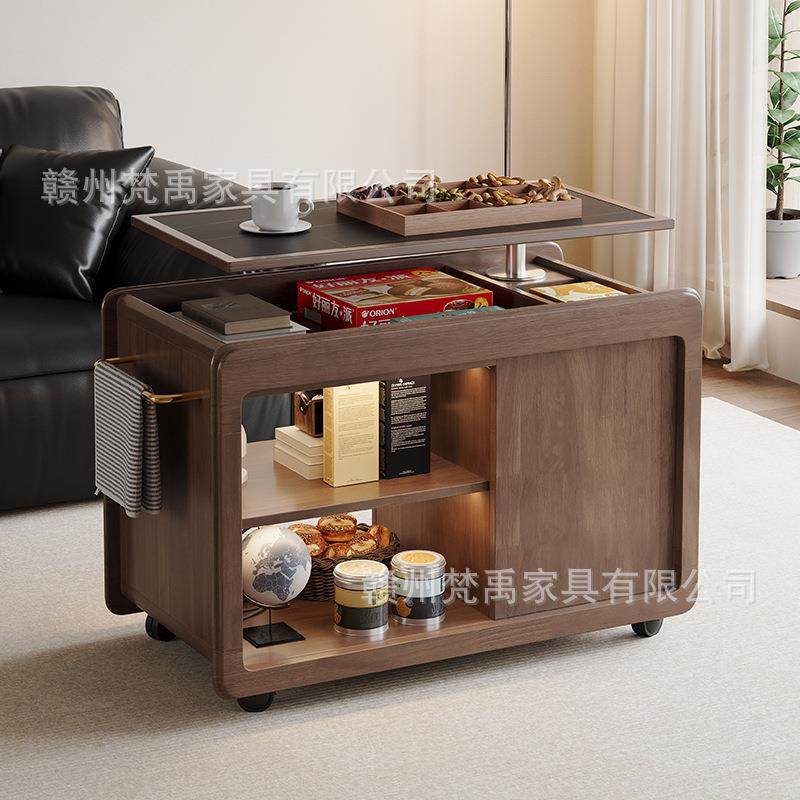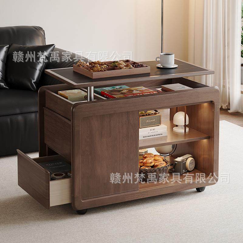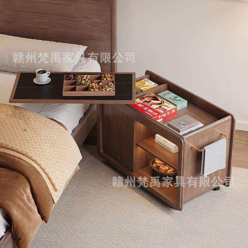 胡桃木可升降移动客厅沙发旁边几复古茶几小桌子卧室床边置物架边
