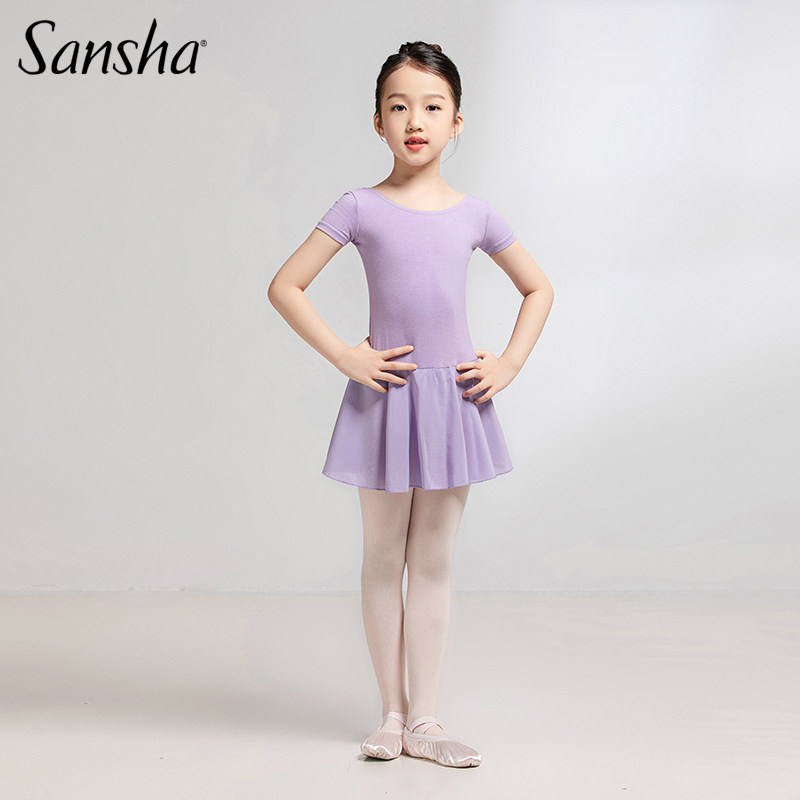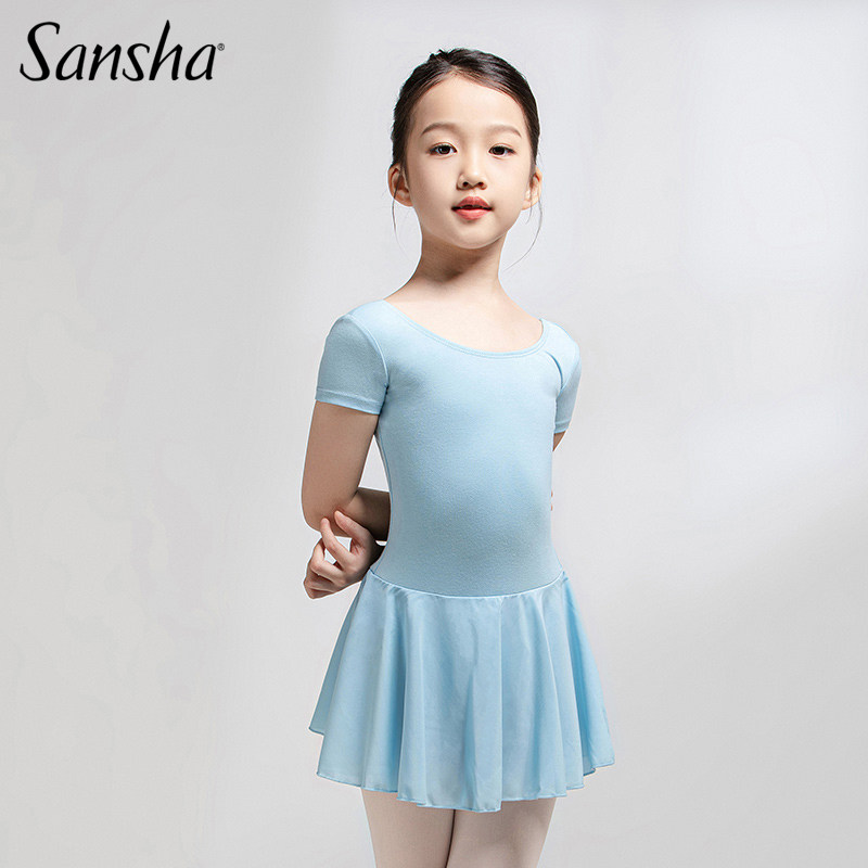 正品sansha三沙儿童舞蹈服芭蕾舞裙连体服棉短袖中国舞考级练功服