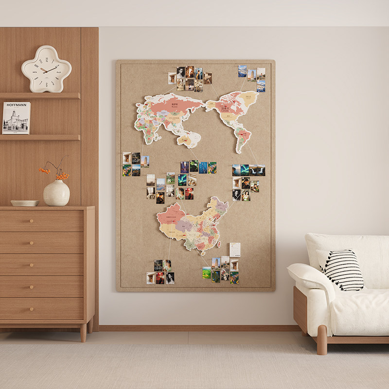 世界地图墙面装饰中国办公室装饰画客厅背景照片墙挂画旅游行标记
