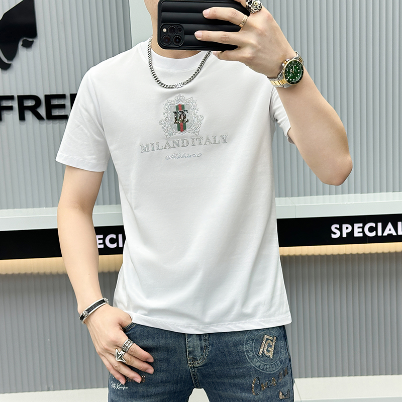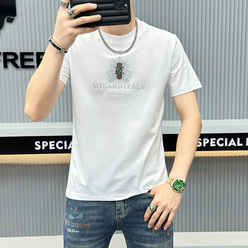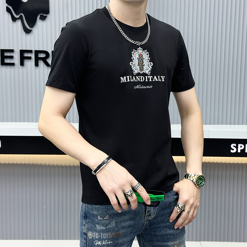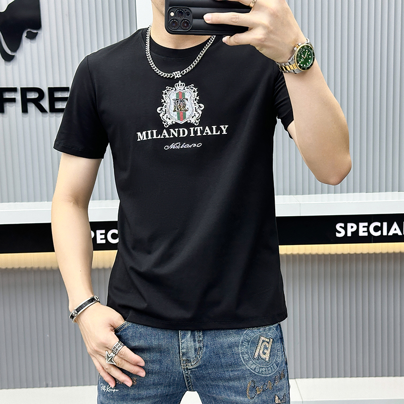 2025夏季轻奢男装欧货短袖男士新款高端潮流修身印花圆领半袖T恤