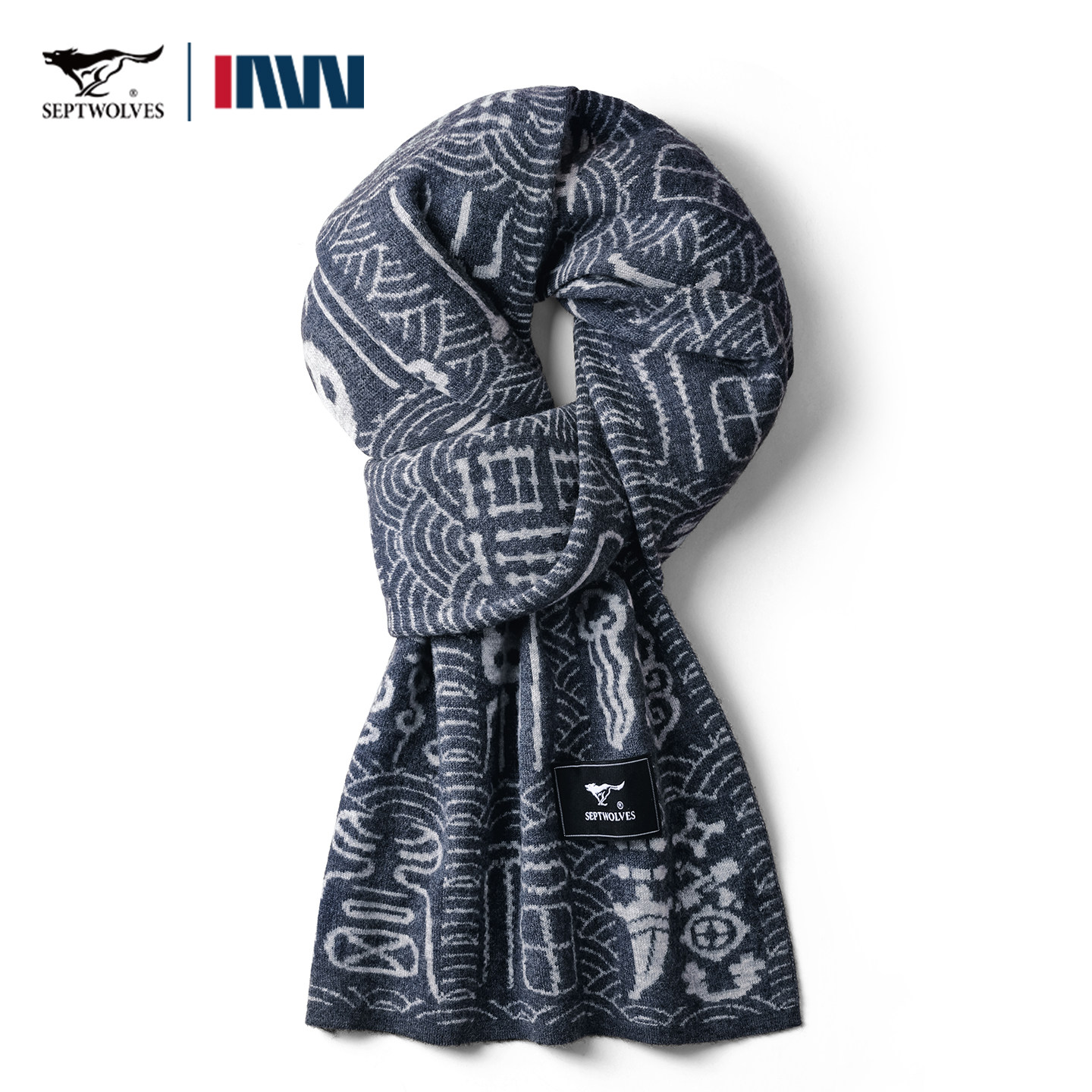 七匹狼国风男士围巾高端100%羊毛中年送爸爸爷爷生日礼物高档礼盒