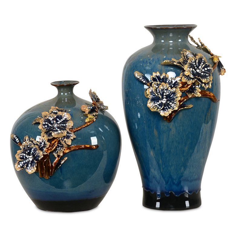 珐琅彩陶瓷花瓶摆件客厅玄关新中式复古插花创意艺术家用装饰品