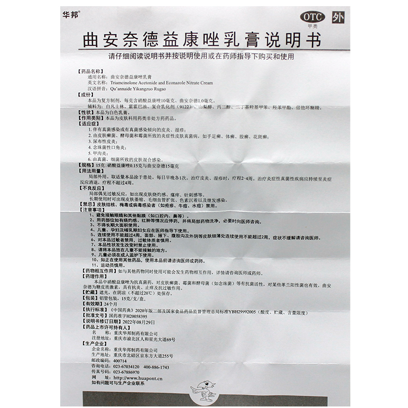 华邦曲安奈德益康唑乳膏15g 真菌感染皮炎湿疹手足癣体癣股癣
