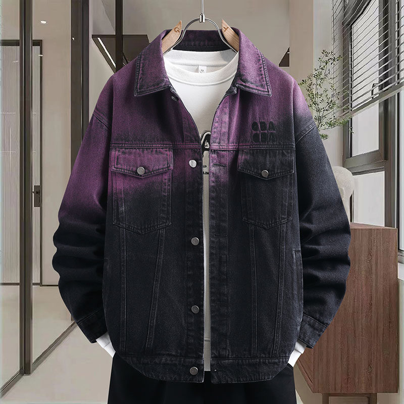 春秋季渐变牛仔外套潮牌宽松帅气青少年夹克大童男孩休闲时尚褂子