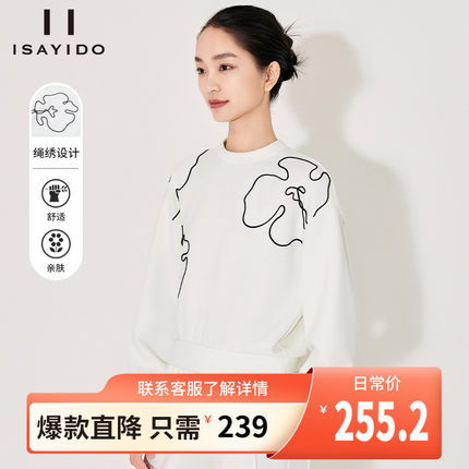 傲丝度简约钩花款圆领长袖卫衣减龄纯色上衣女春新款宽松百搭T恤