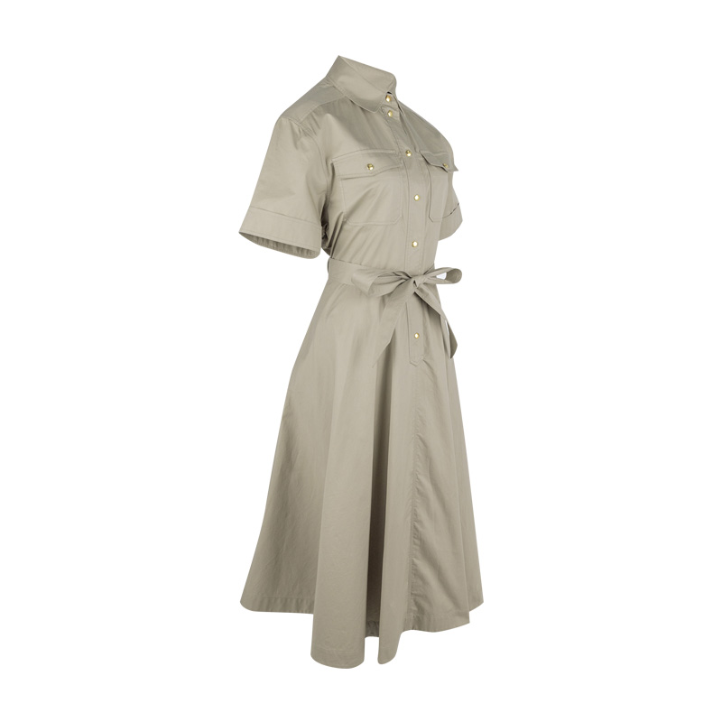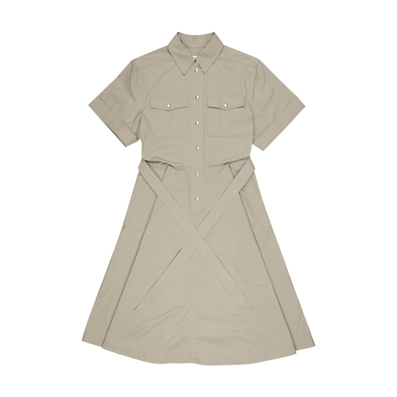 赛琳女士单排扣衬衫式短袖连衣裙