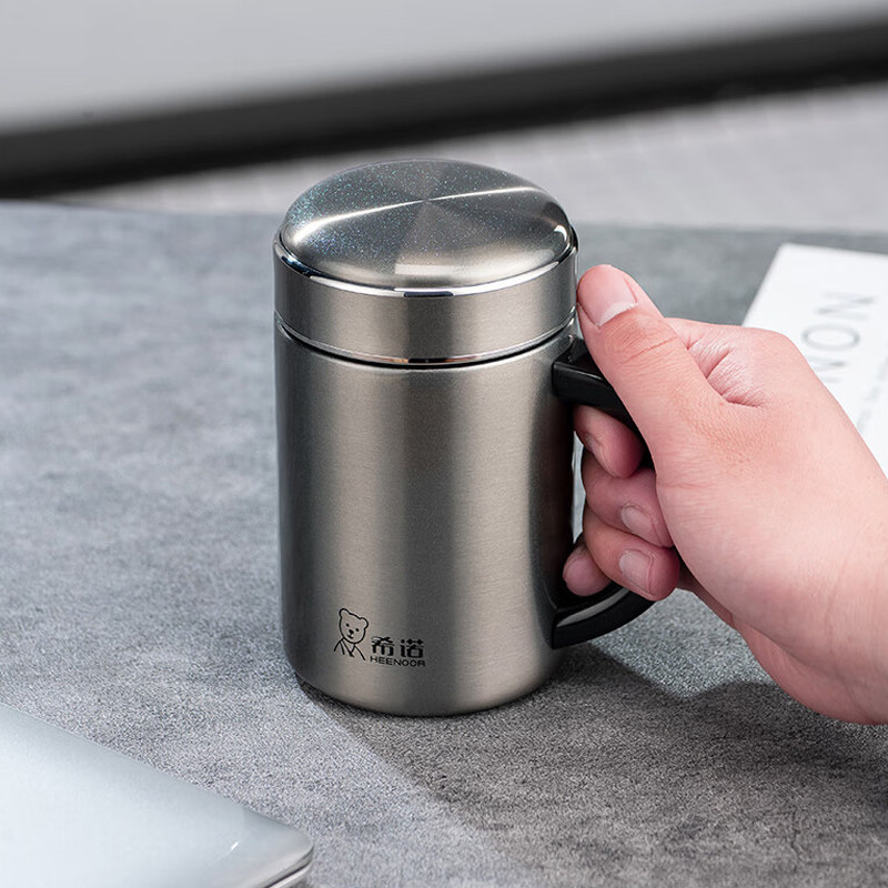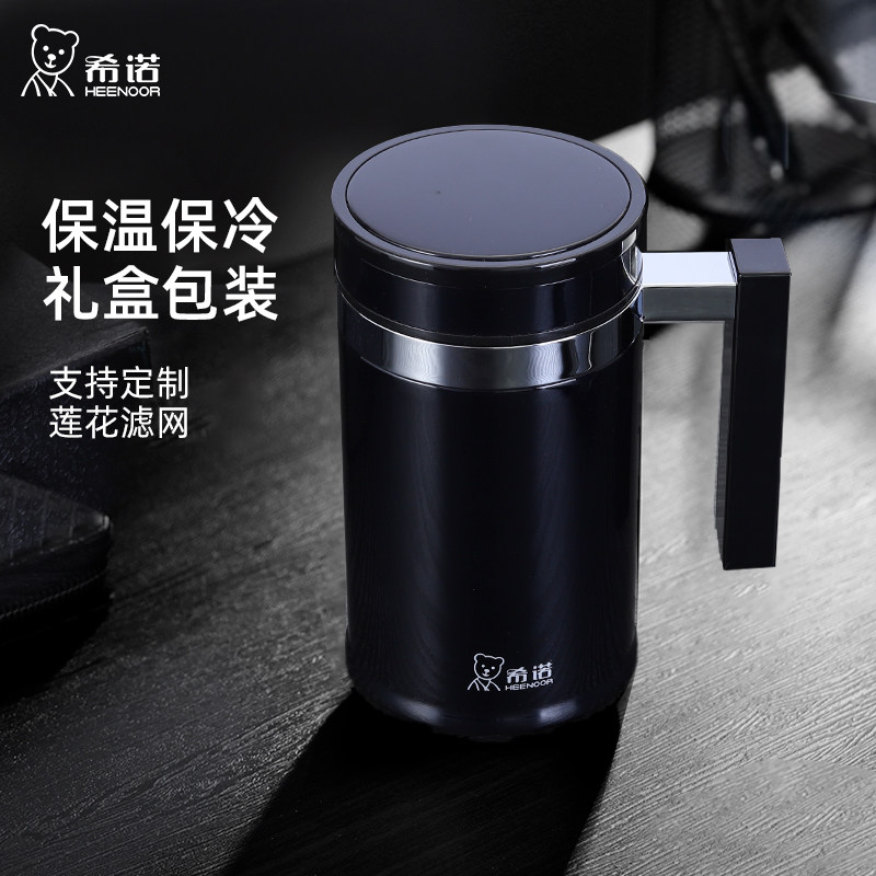 希诺保温杯带手把 男士大容量不锈钢过滤茶杯 办公泡茶新款杯子