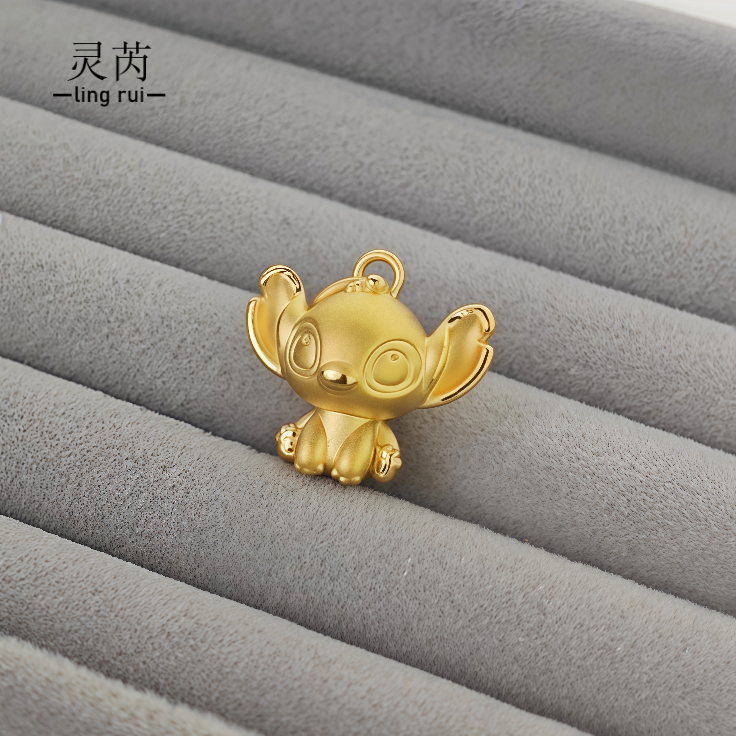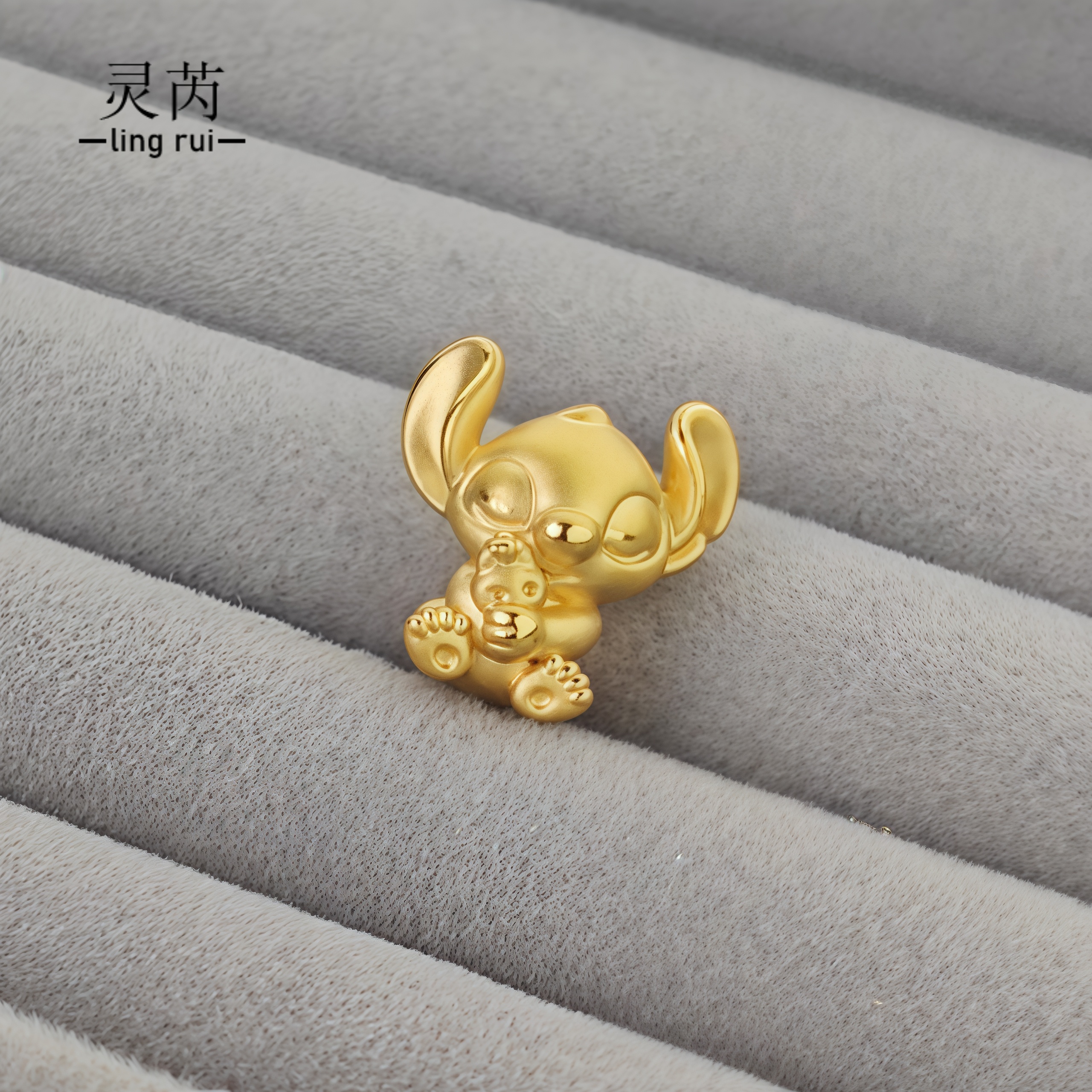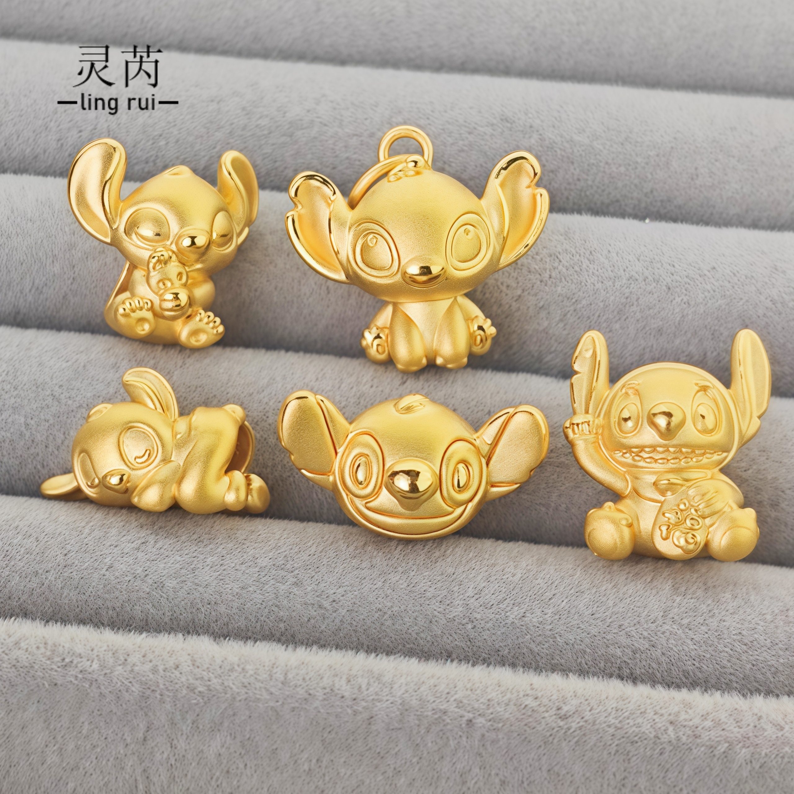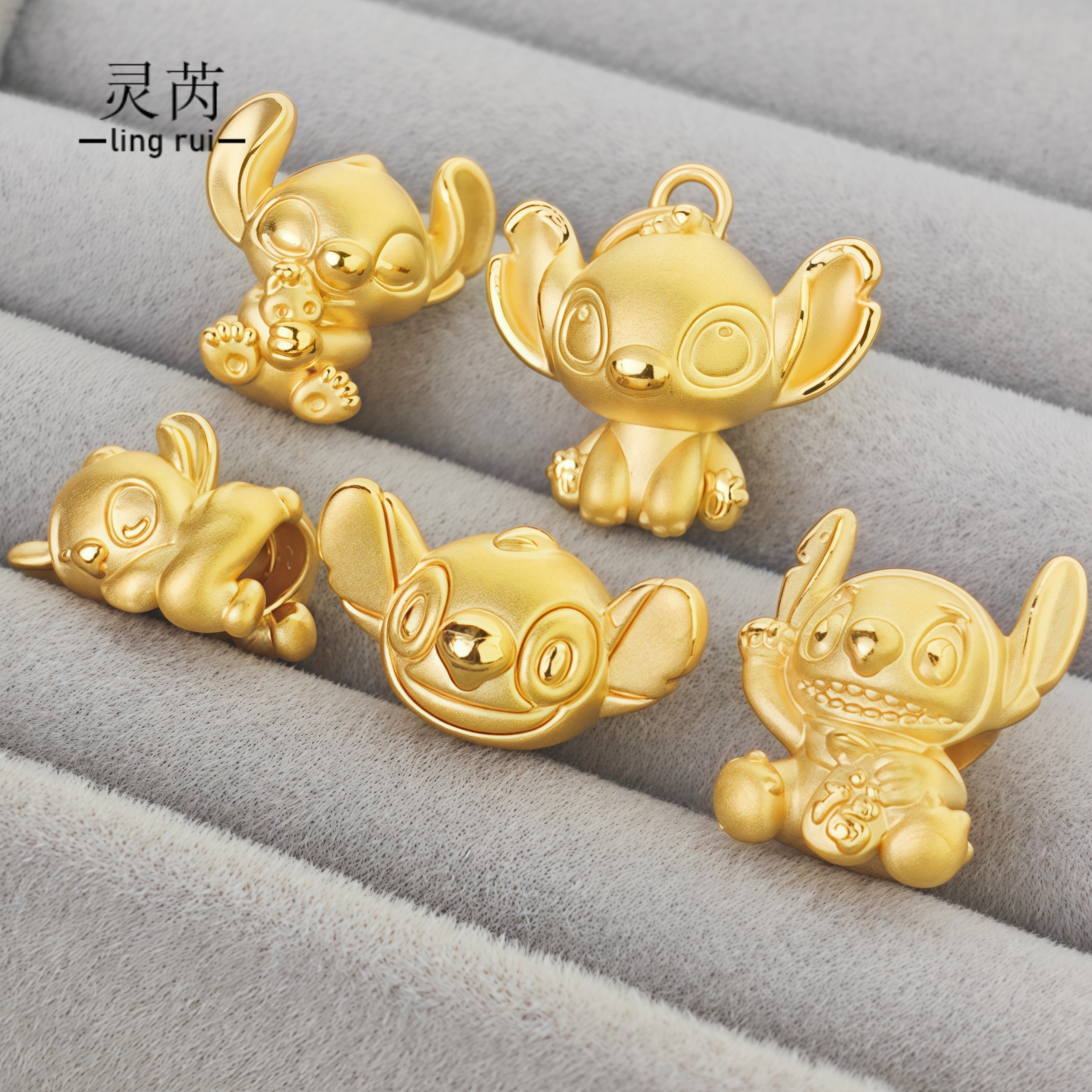 足金999史迪仔diy生日黄金转运珠手链吊坠硬金七夕情人节送女朋友