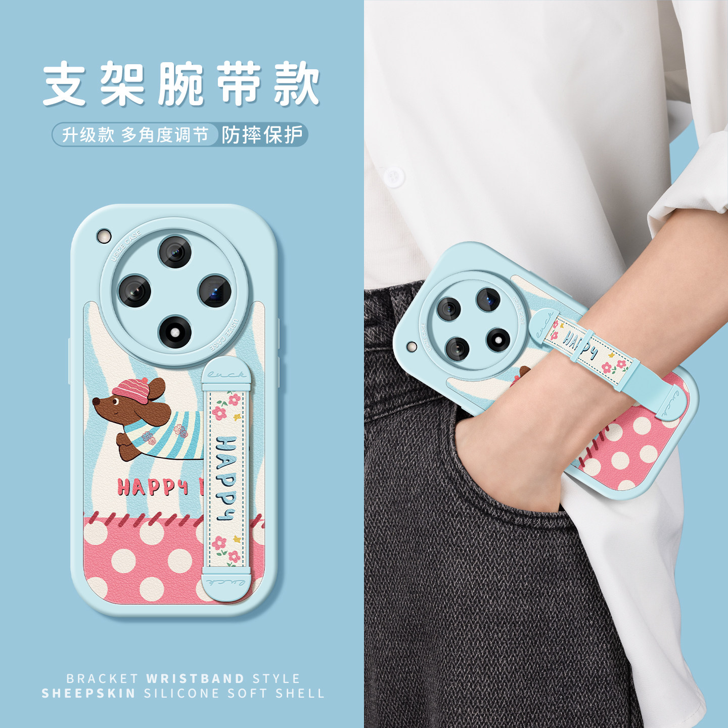 腕带适用oppofindx8pro手机壳女款findx7Ultra保护套findx6/5新款支架oppo防摔x3硅胶全包x8s点点小狗软壳