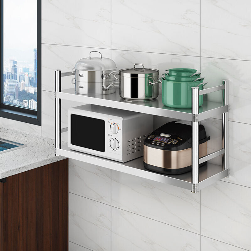 不锈钢吊架厨房置物架3层微波炉可挂墙上调味架托壁式2展示货架子