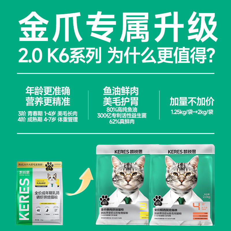 【请拍2.0升级款】凯锐思金爪猫粮乳鸽磷虾美毛烘焙旗舰店正品