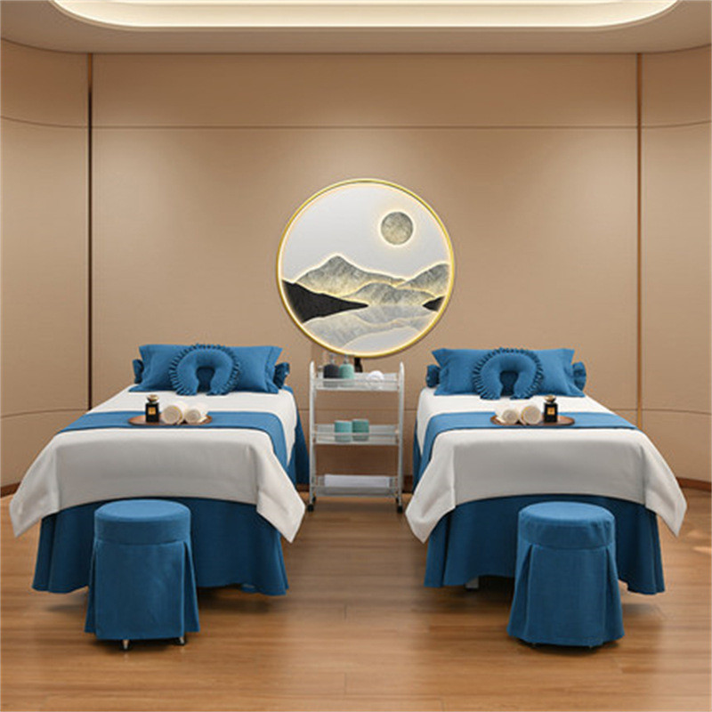 厂家批发轻奢采耳美容院美容床罩四件套足疗按摩床罩床套刺绣logo