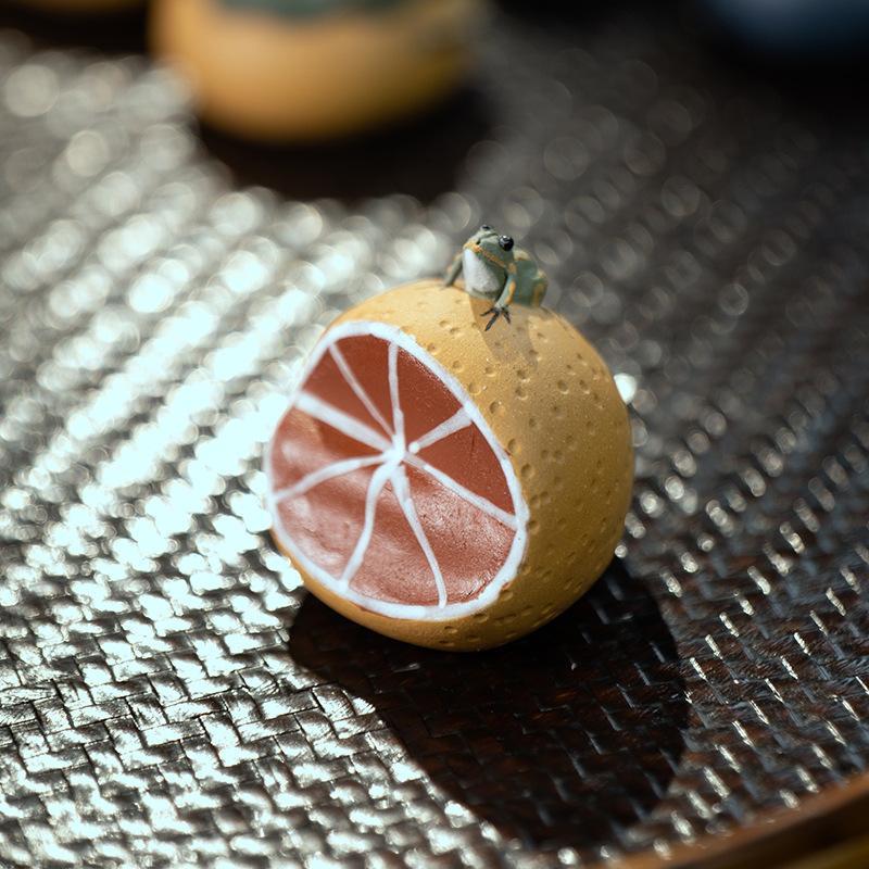 [席韵堂]宜兴紫砂壶茶道配件茶玩可养茶宠摆件西瓜喷水青蛙雕塑