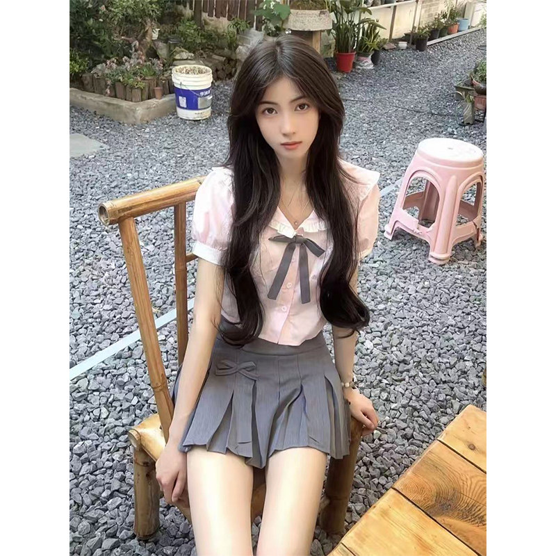 新款套装校供设计感粉色短袖衬衫韩系百搭短裙整套原创jk制服裙子