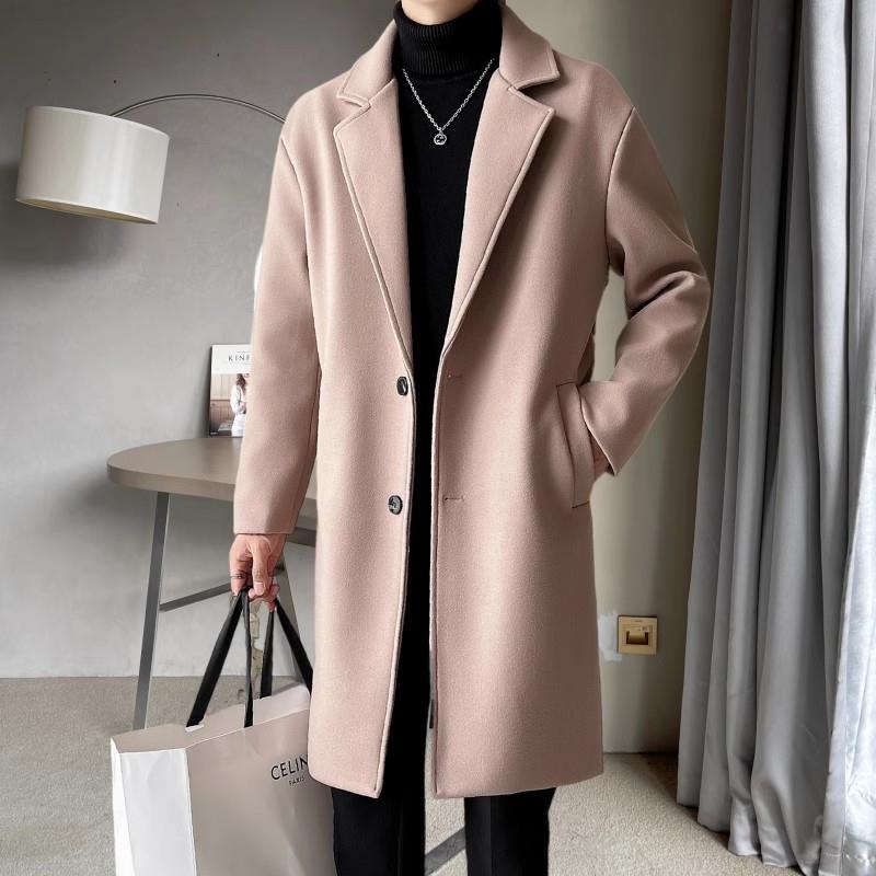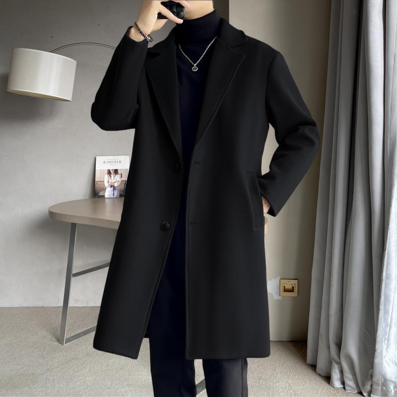 2025秋冬季男生休闲加厚中长款毛呢大衣百搭宽松单排扣风衣1022r