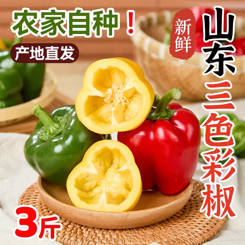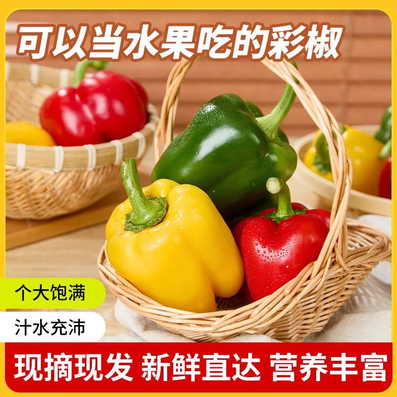 彩椒新鲜生吃水果青椒三色灯笼甜椒柿子椒小米圆辣椒寿光农家种植