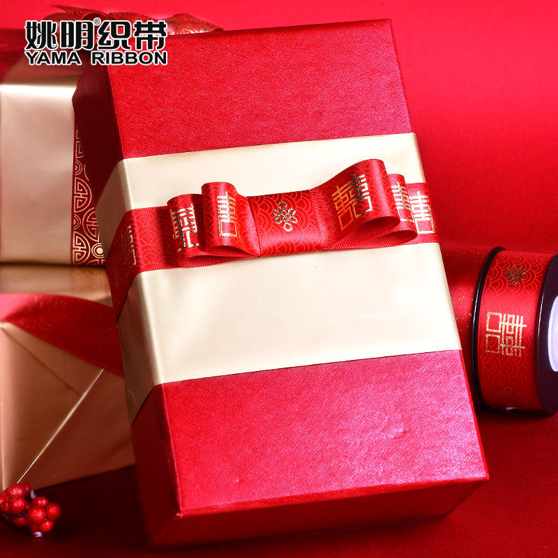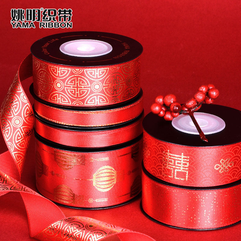 姚明织带中式婚庆装饰带烫金丝带礼盒包装带辅料节日婚礼彩带缎带