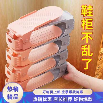可调节鞋柜鞋子收纳神器塑料双层鞋架简易家用一体式鞋托架折叠式