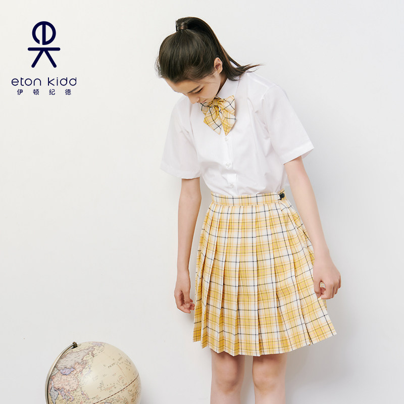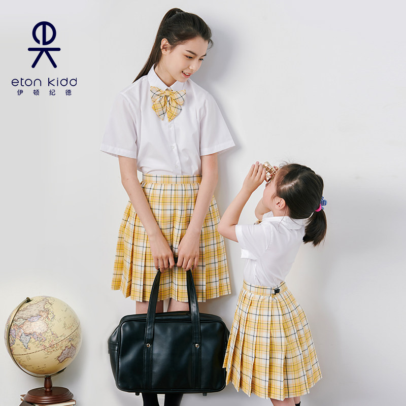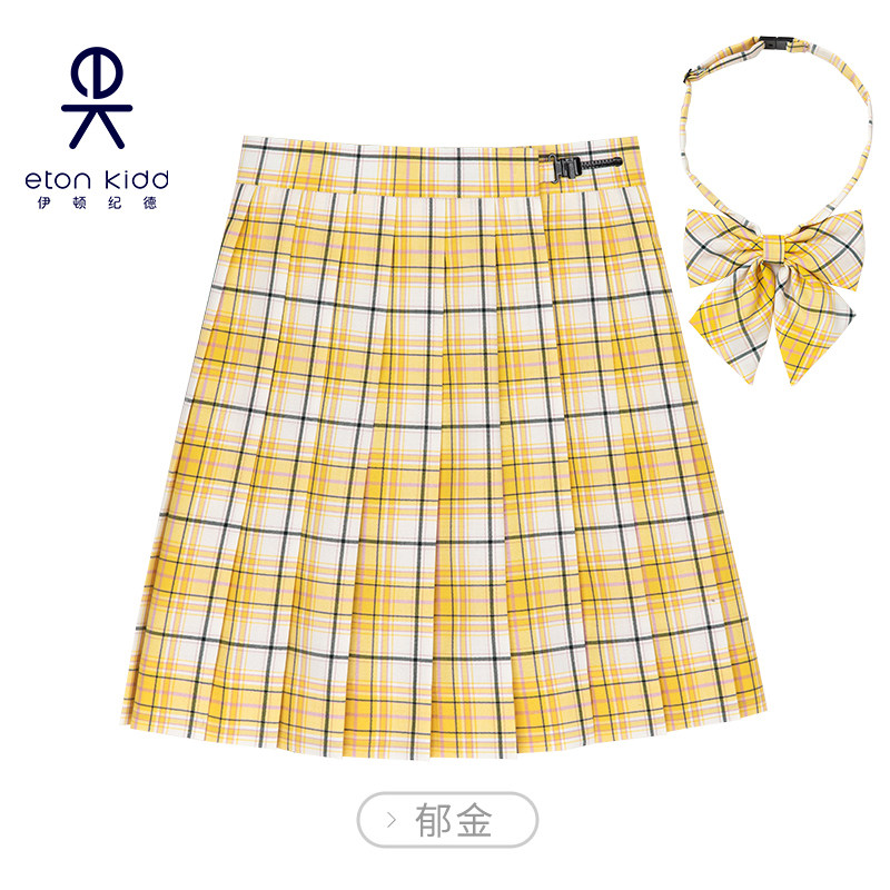 199元赠领花 伊顿纪德新款女童学院半身裙学生郁金格百褶22Q911