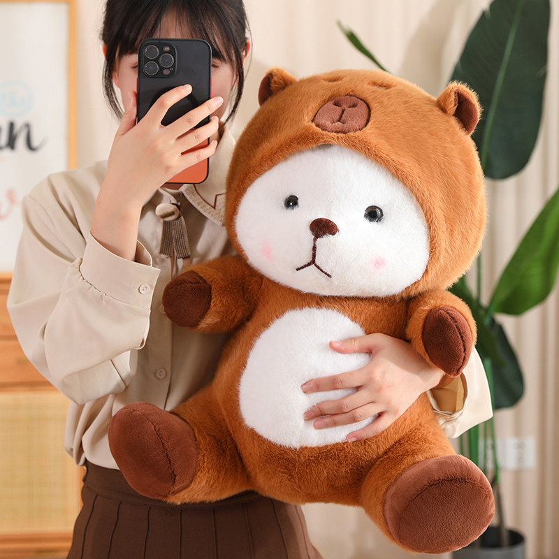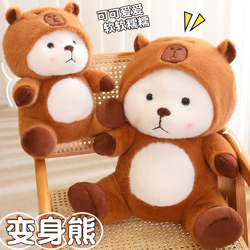 变身熊公仔小熊变身水豚卡皮巴拉丽娜毛绒玩具布娃娃睡觉玩偶礼物