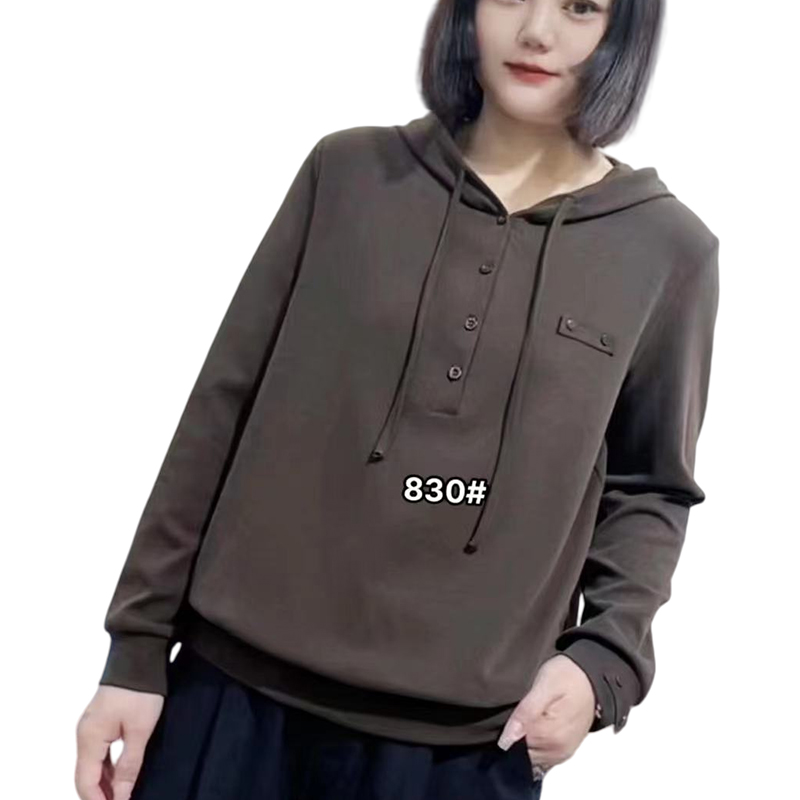 李明服饰830 休闲装卫衣女C大码女装新款宽松连帽纯色长袖上衣女