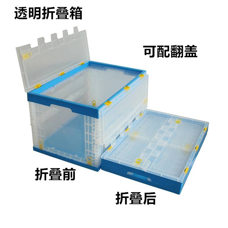 折叠箱蓝色塑料周转筐汽车后备箱收纳整理框带有盖透明加厚物流箱