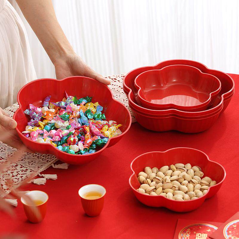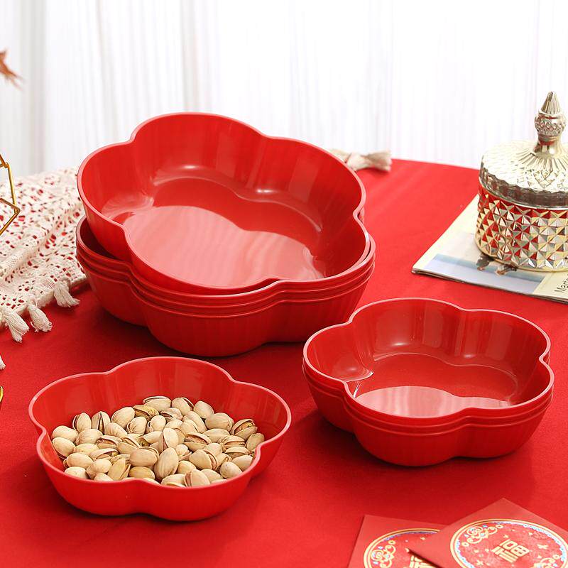 过年过节红色贡品盘喜事红盘新家入伙糖果盘过年瓜子干果碟水果盘