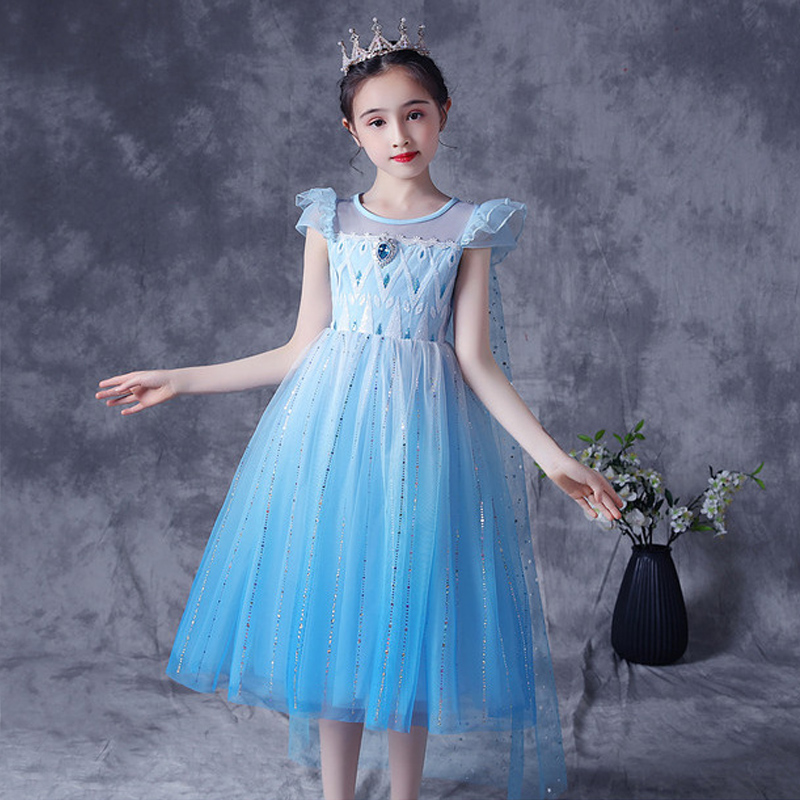 冰雪奇缘艾莎公主裙中小女童蓬蓬洋气长款纱裙生日礼服舞台演出服