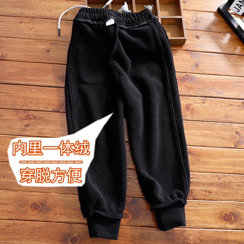 儿童瘦版加绒运动裤男童秋冬季一体绒修身裤子中大童加厚休闲长裤