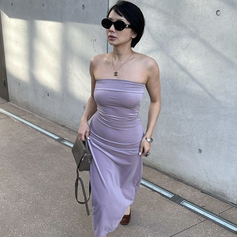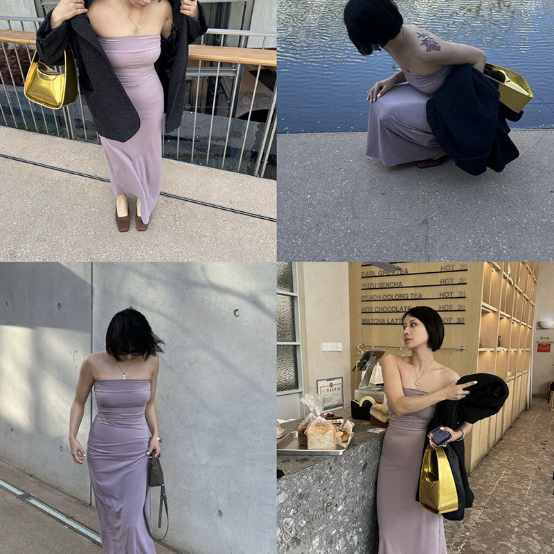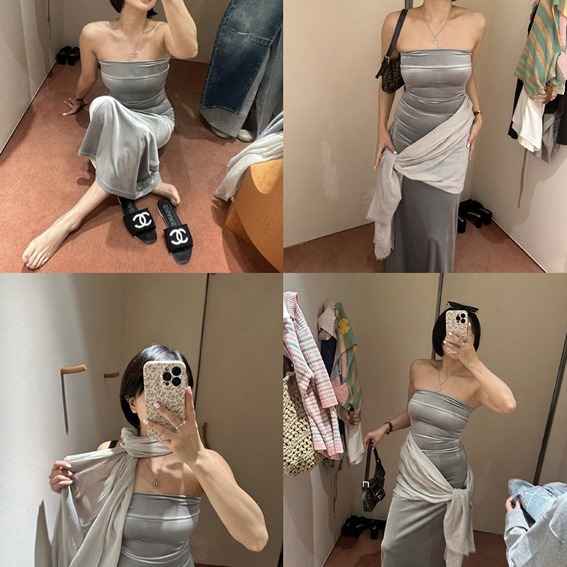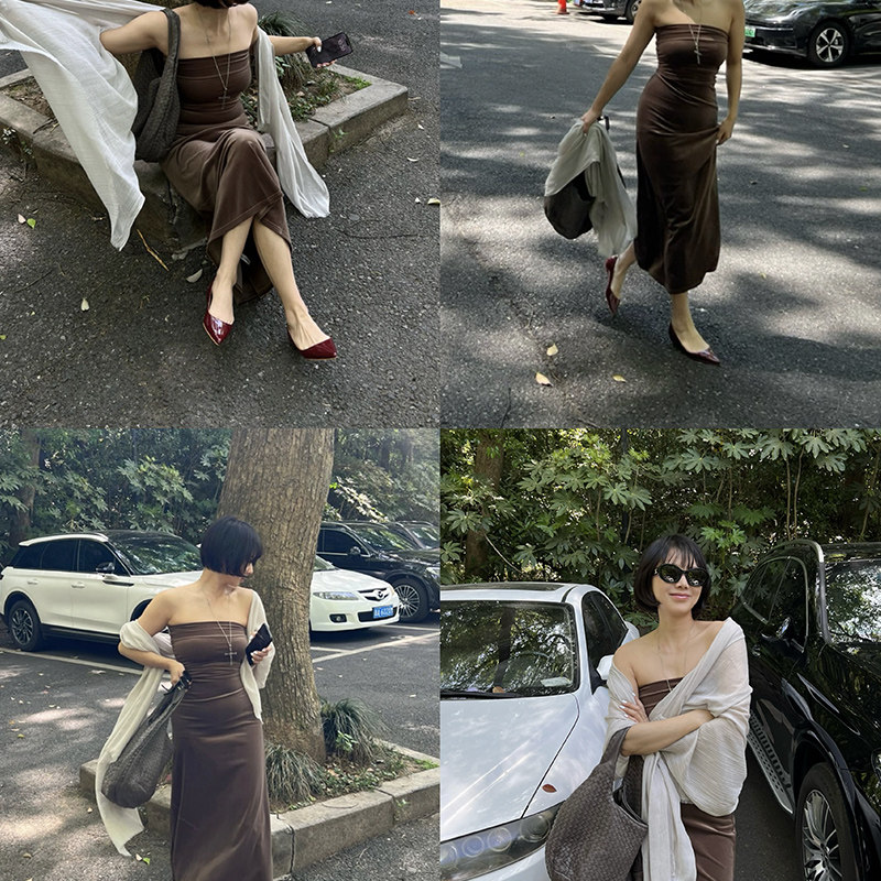 SECRET DINDI 复古轮回 质感丝绒抹胸连衣裙女夏高腰显瘦长款裙子