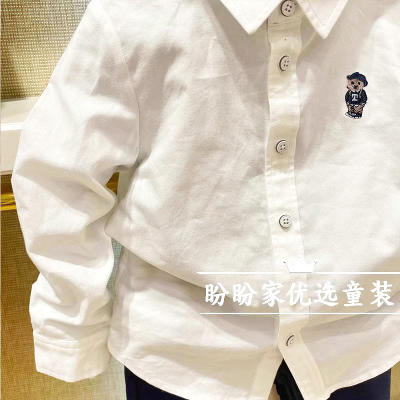 男童白衬衫厚款秋冬款儿童男宝宝中大童纯棉内搭水洗长袖衬衣