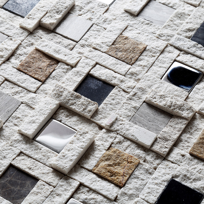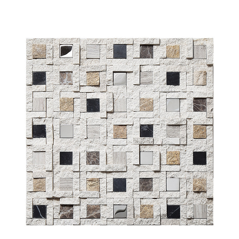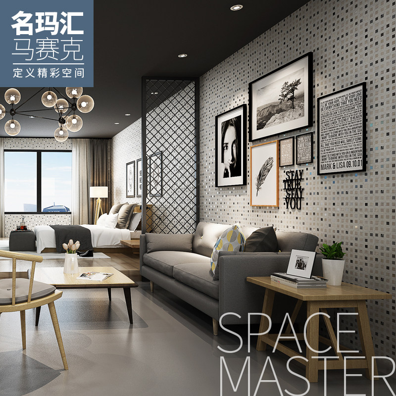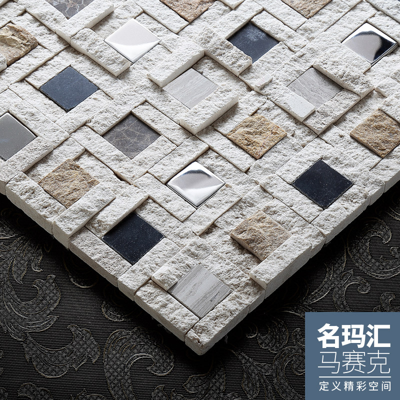 名玛汇天然石材马赛克瓷砖电视背景墙客厅玄关米色文化石拼图墙贴