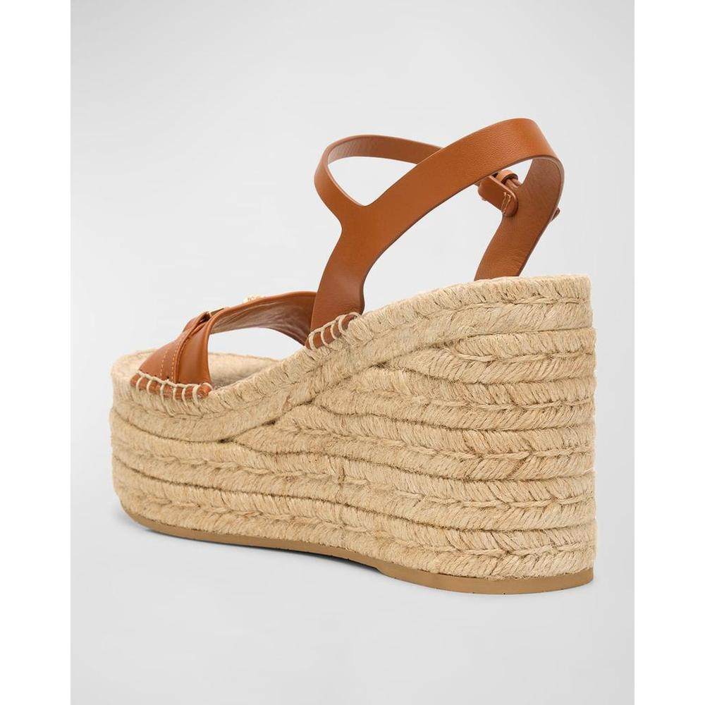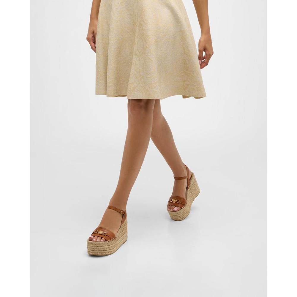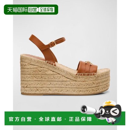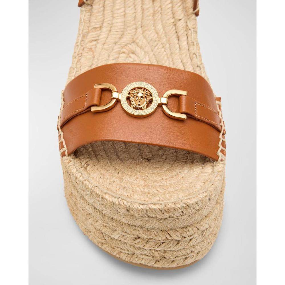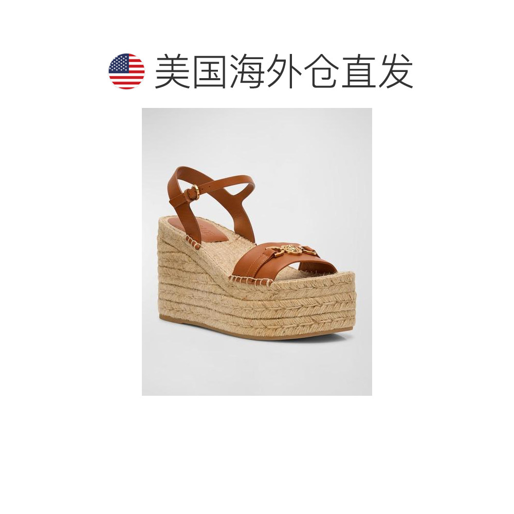 【美国直邮】versace 女士 凉鞋坡跟范思哲草编编织真皮尖头女鞋