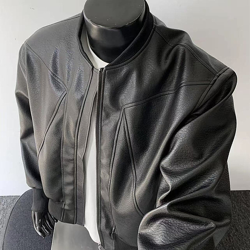 美式高级感重磅立领皮衣外套男秋季潮牌痞帅正肩短款机车工装夹克
