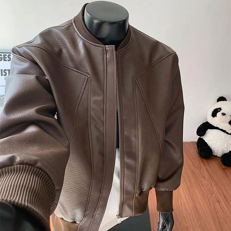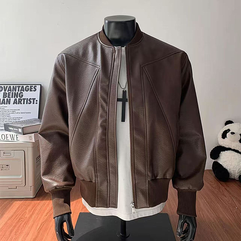 重磅立领皮衣外套男机车工装夹克