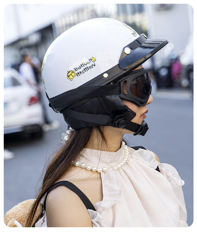 哈雷头盔复古盔皮盔电动车半盔男女夏季可爱轻便四季电瓶车安全帽