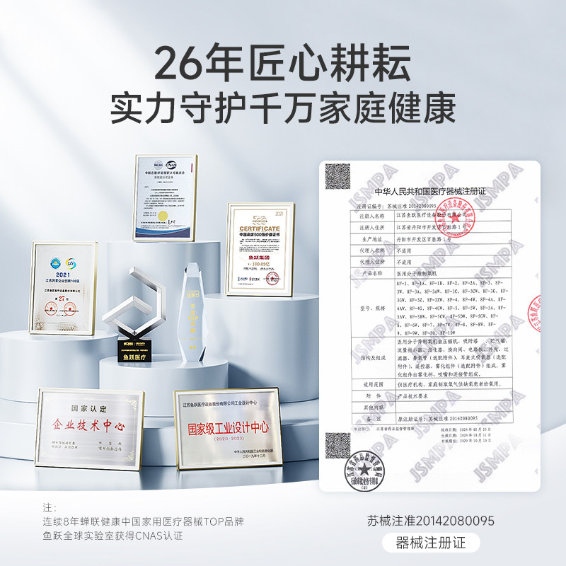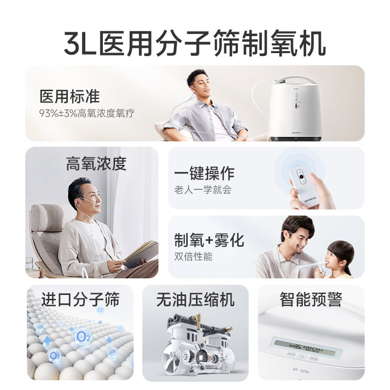 鱼跃制氧机家用吸氧老人医用3L升浓度90%小型家庭雾化氧气8F-3ZW