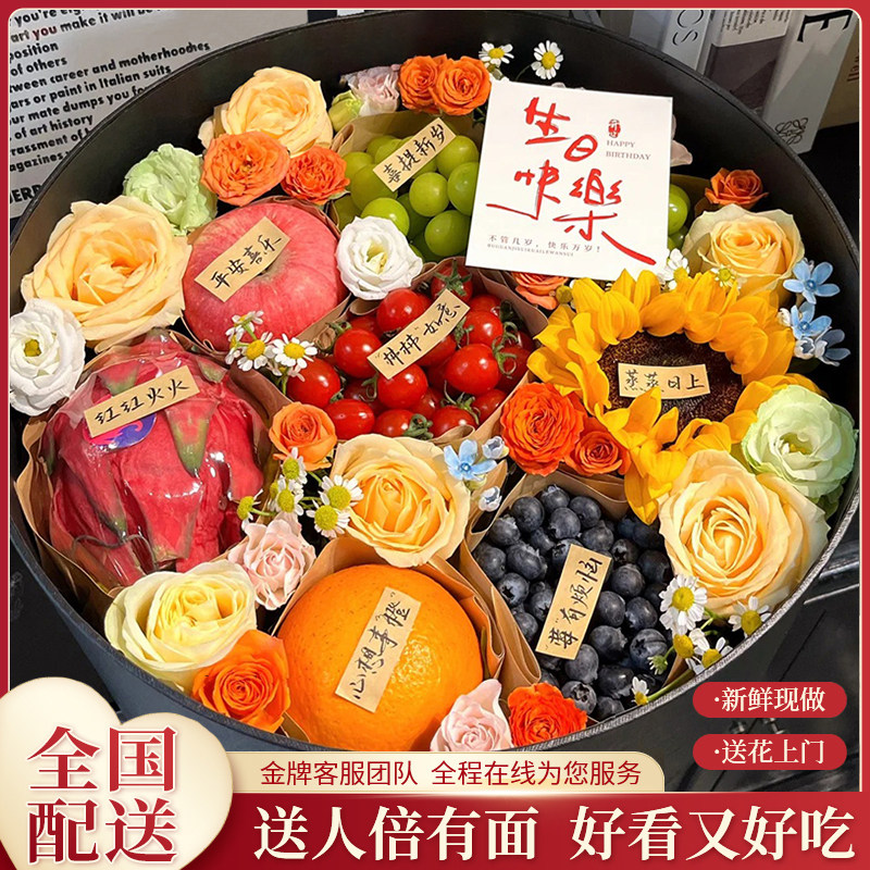 全国小时达生日乔迁高端水果篮鲜花礼盒花束成品速递同城配送花店