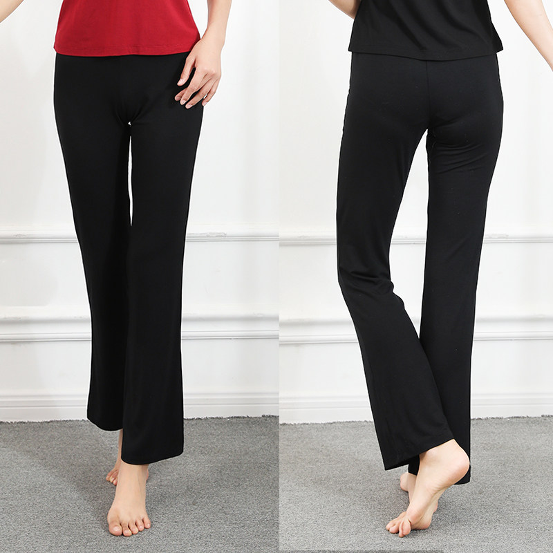 春夏黑色瑜伽直筒喇叭长裤舞蹈服瑜伽裤广场舞服装形体礼仪裤修身