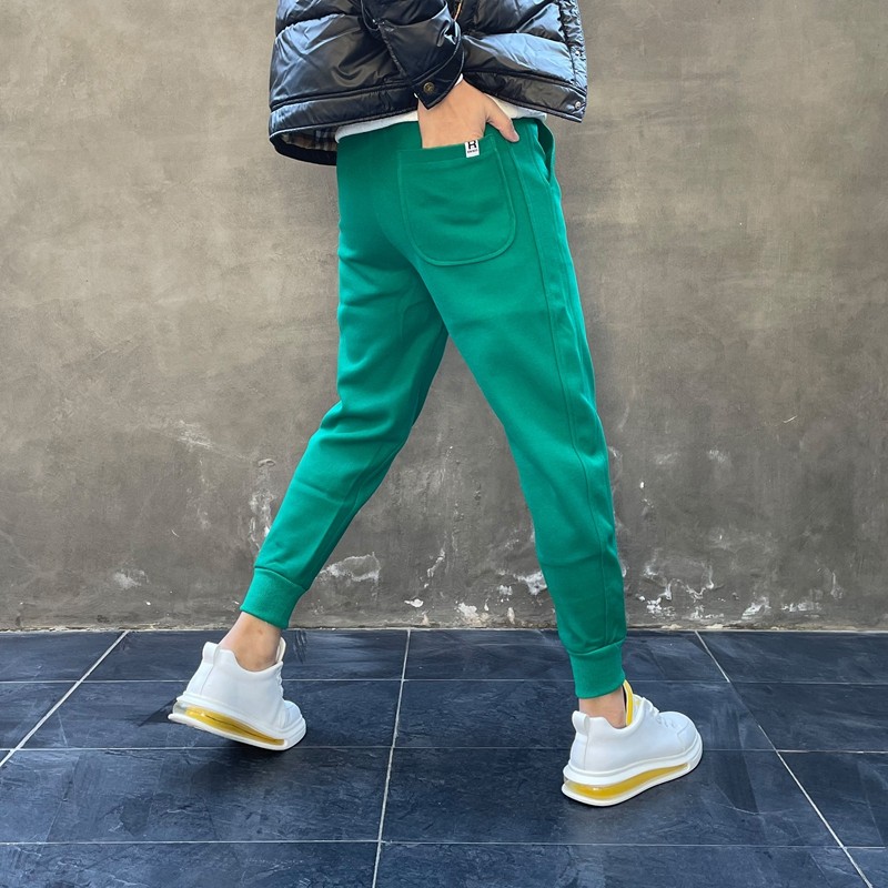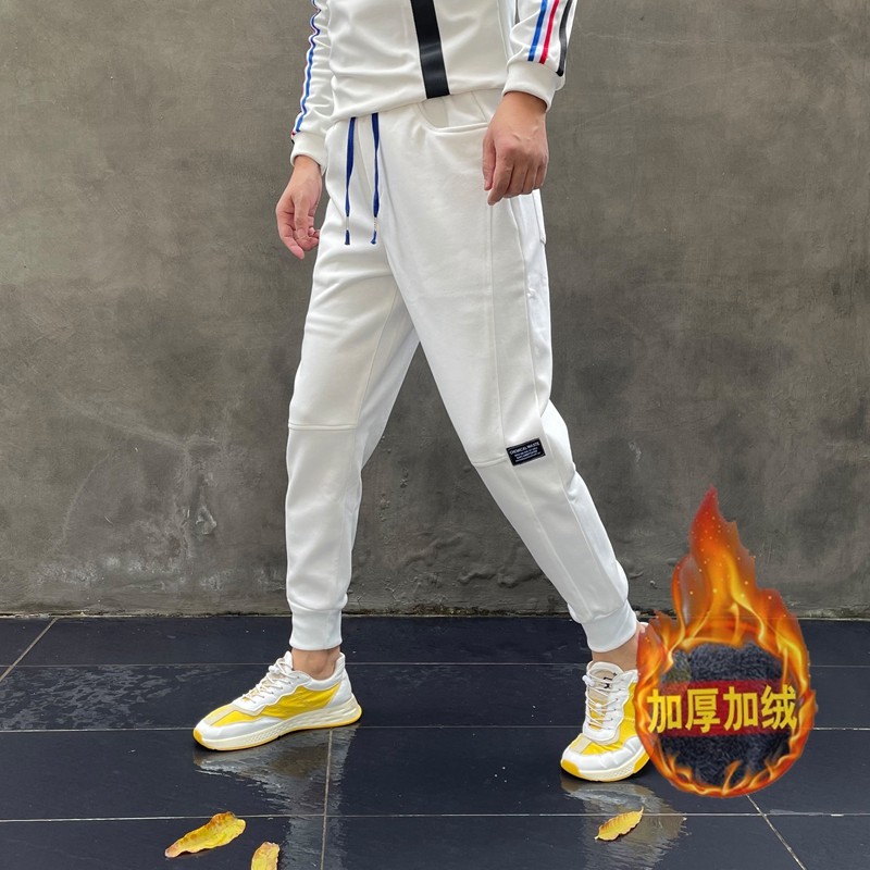 秋冬加绒刺绣AB字母运动裤男韩版潮流彩色修身针织卫裤哈伦休闲裤