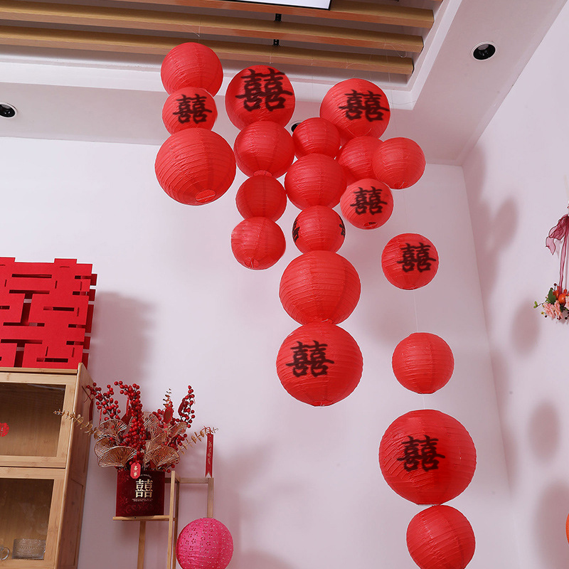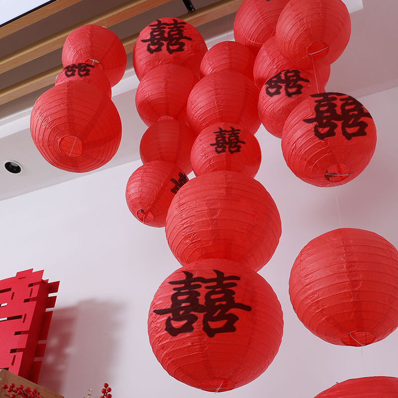 吾家婚品婚房灯笼挂串装饰结婚小挂件喜庆红喜字灯笼中式婚礼树挂