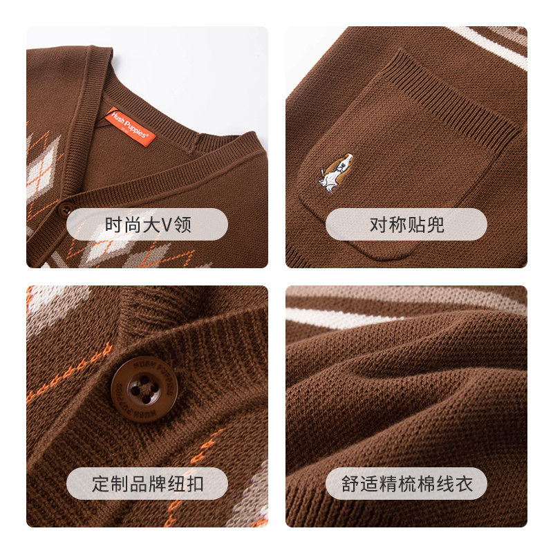 【复古】暇步士童装男童针织开衫秋冬款大童毛衣外套儿童复古线衣