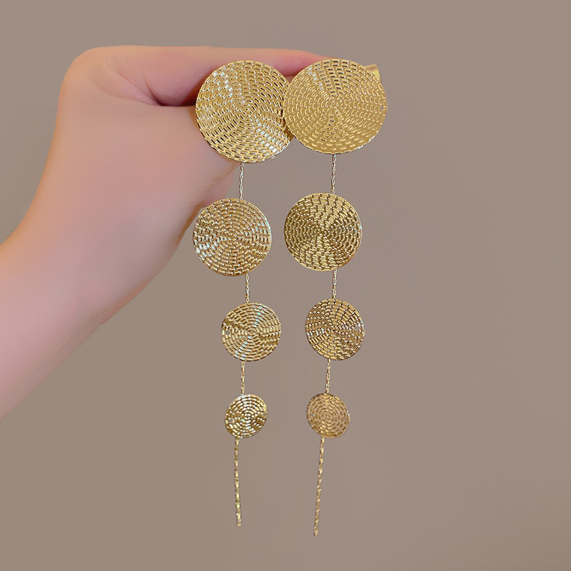 老钱风~金色圆片长款流苏耳环夸张小众设计高级感气质时尚耳钉女
