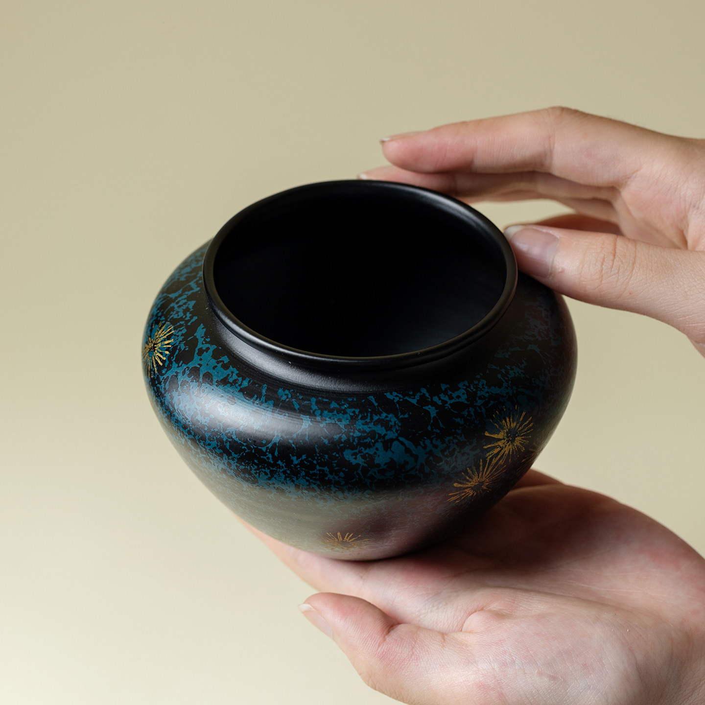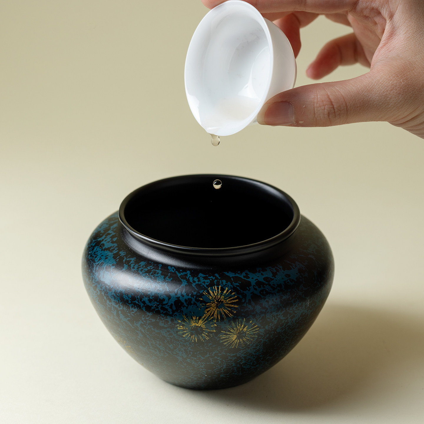 束刻 禅意建水大漆老铁茶洗小号家用干泡水孟茶渣缸废水缸建水