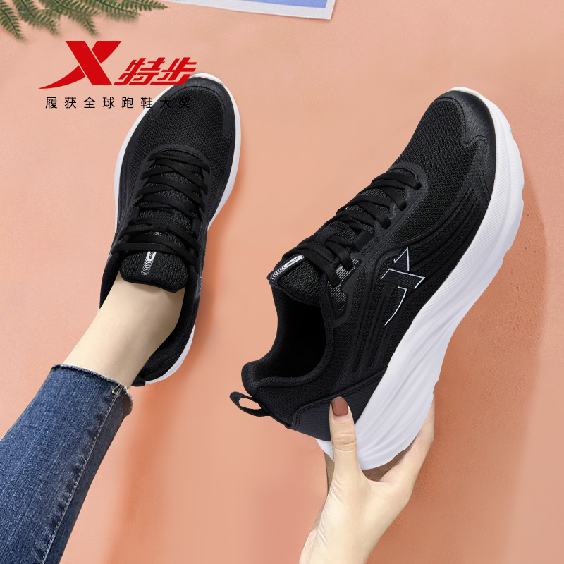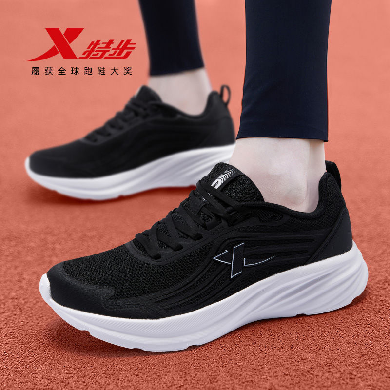 特步女鞋2025新款夏季网面透气薄款妈妈运动鞋软底中年减震跑步鞋
