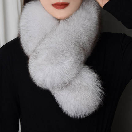 狐狸毛围巾女冬季加厚双面百搭简约气质护颈皮草毛领子獭兔毛围脖