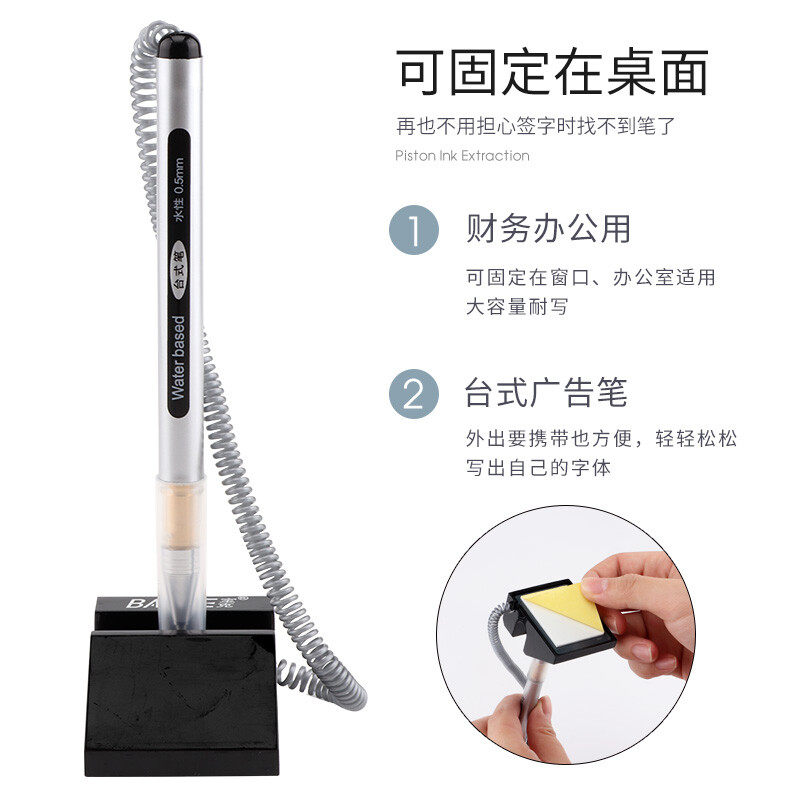 宝克650台笔带线办公签字笔带绳中性笔前台固定笔座粘在桌子上的笔电话线防丢笔神器柜台服务台粘桌面水笔